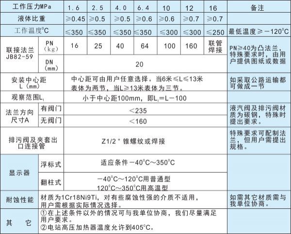 磁浮式液位計技術(shù)參數(shù)